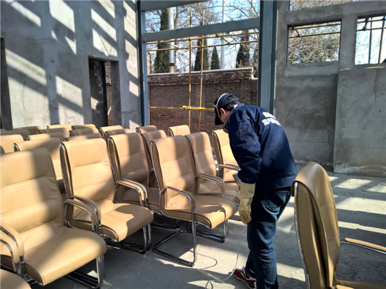 對于第二條就要召開的陶瓷產業會議大廳,由于會議物料帶來的難聞刺鼻異味怎么辦?交給新居邦除甲醛公司來處理。以下就是銅川市政府召開的耀州陶瓷產業座談會物料除甲醛除異味的現場: