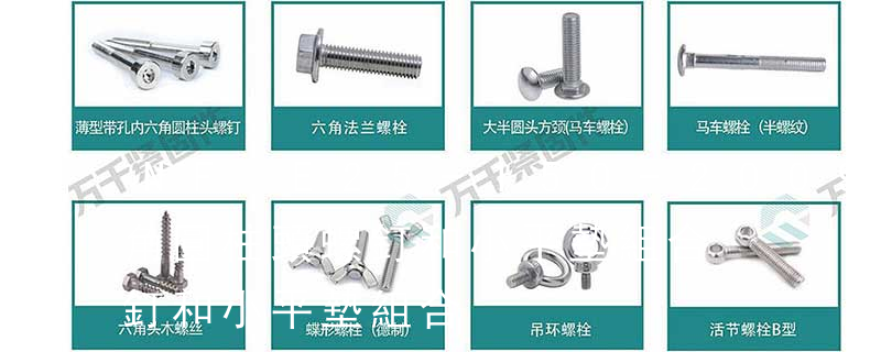 內六角圓柱頭螺絲、內六角沉頭螺絲、半圓頭內六角螺絲、內六角圓柱頭軸肩螺絲、塞打螺絲、梅華槽螺絲、內六角緊定螺絲、一字緊定螺絲、方頭緊定螺絲、滾花頭螺絲、蝶形螺絲、拇指螺絲、自攻尖尾螺絲、自攻平尾螺絲、自攻割